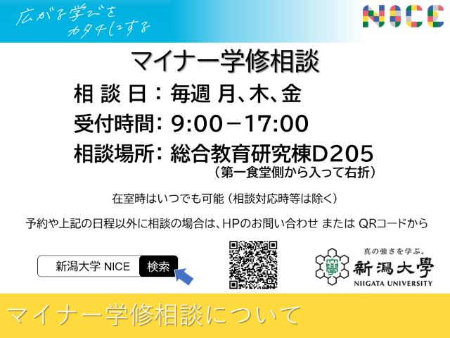 ・相談場所:総合教育研究棟D205(NICEプログラムオフィス)